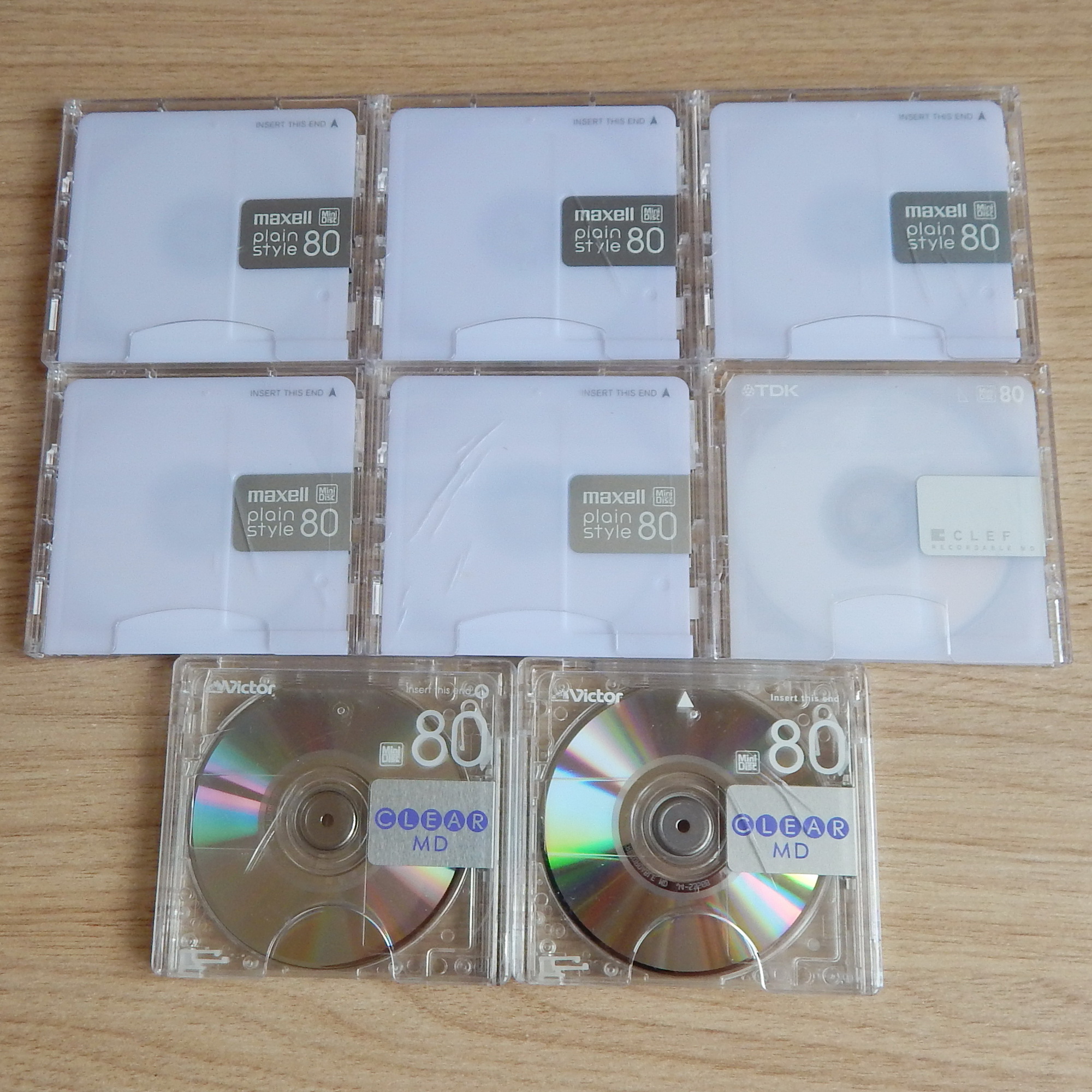 Цена за 8 минидисков. Диски из одной коллекции (последнее фото), результат отбраковки из 500 штук попалось 7 наружных футляров с трещинами, целостность футляров не нарушена, один футляр с загрязнениями (TDK).