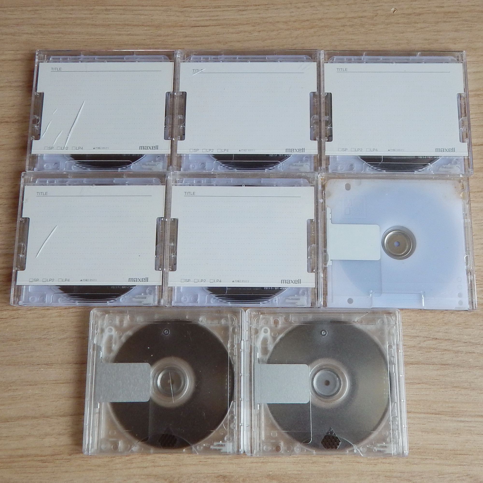Минидиски перезаписываемые, куплены в Японии, в составе одного большого лота (около 500 минидисков, все MD80 - последнее фото лота). Каких-либо наклеек на корпусах и футлярах изначально не было. Проверил выборочно содержание на минидисках из этого лота. На всех были записи японских радиостанций (возможно одной радиостанции), в основном в режиме MDLP LP4, на 3-х дисках были записи в режиме SP, на них в названии диска была прописана частота радиостанции и дата.