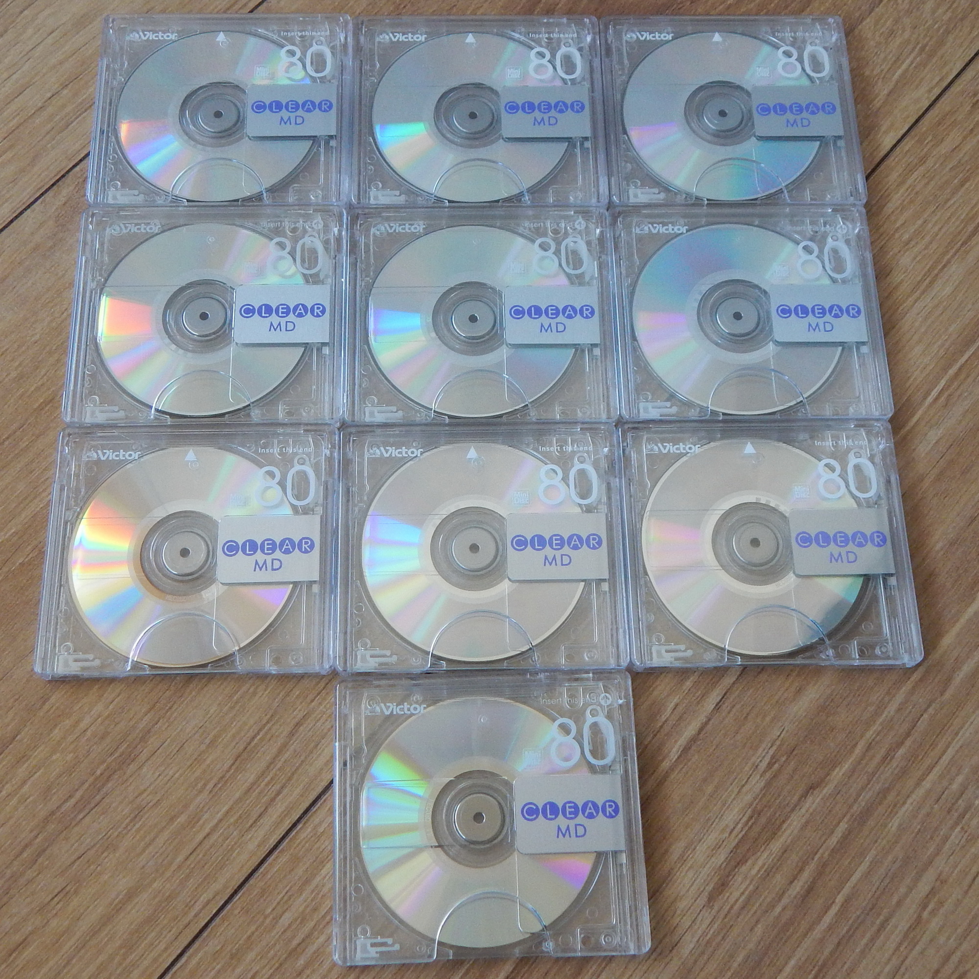 Цена за 10 минидисков. Это диски из серии Clear 2006 г. фирмы Victor. Все диски из одной коллекции, в очень хорошем косметическом состоянии. Футляры разборные (фото 4), только нужна небольшая сноровка и опыт. С учетом общего первоначального количества таких минидисков 218 шт., если желаете купить большое количество - предварительно спрашивайте!
