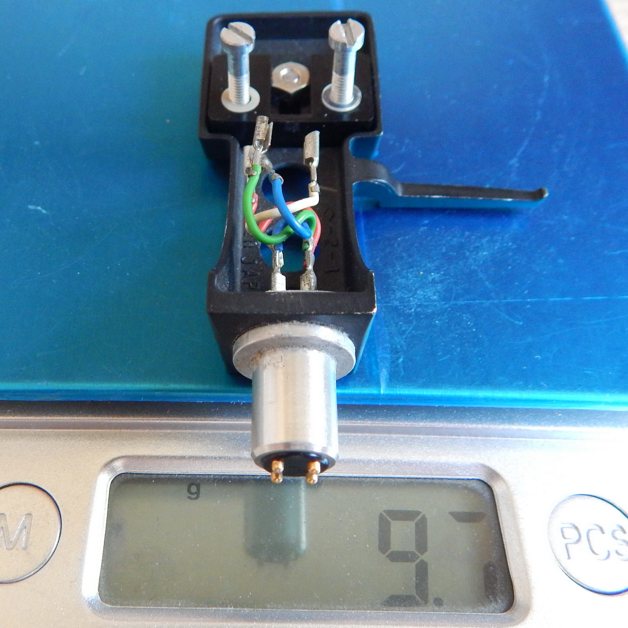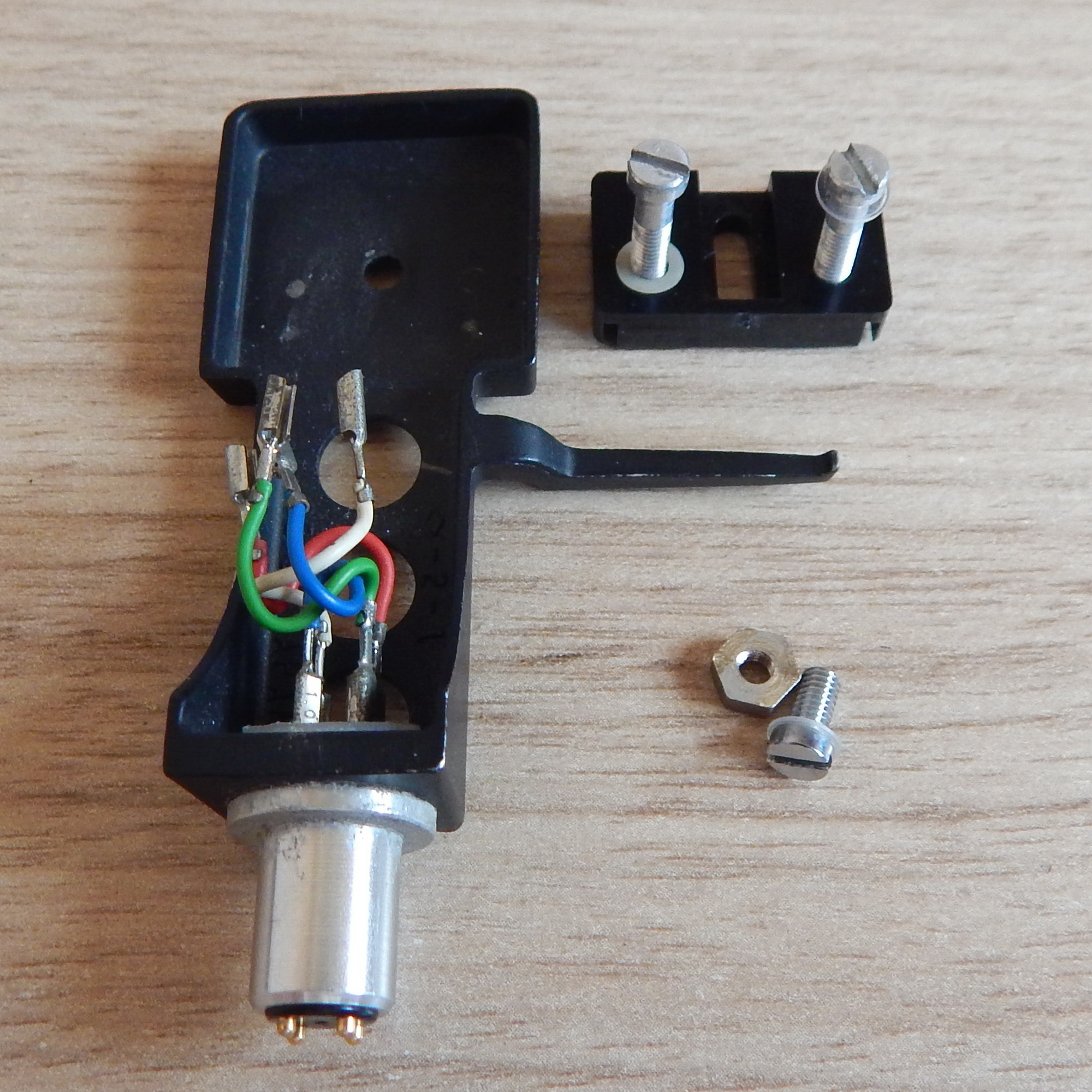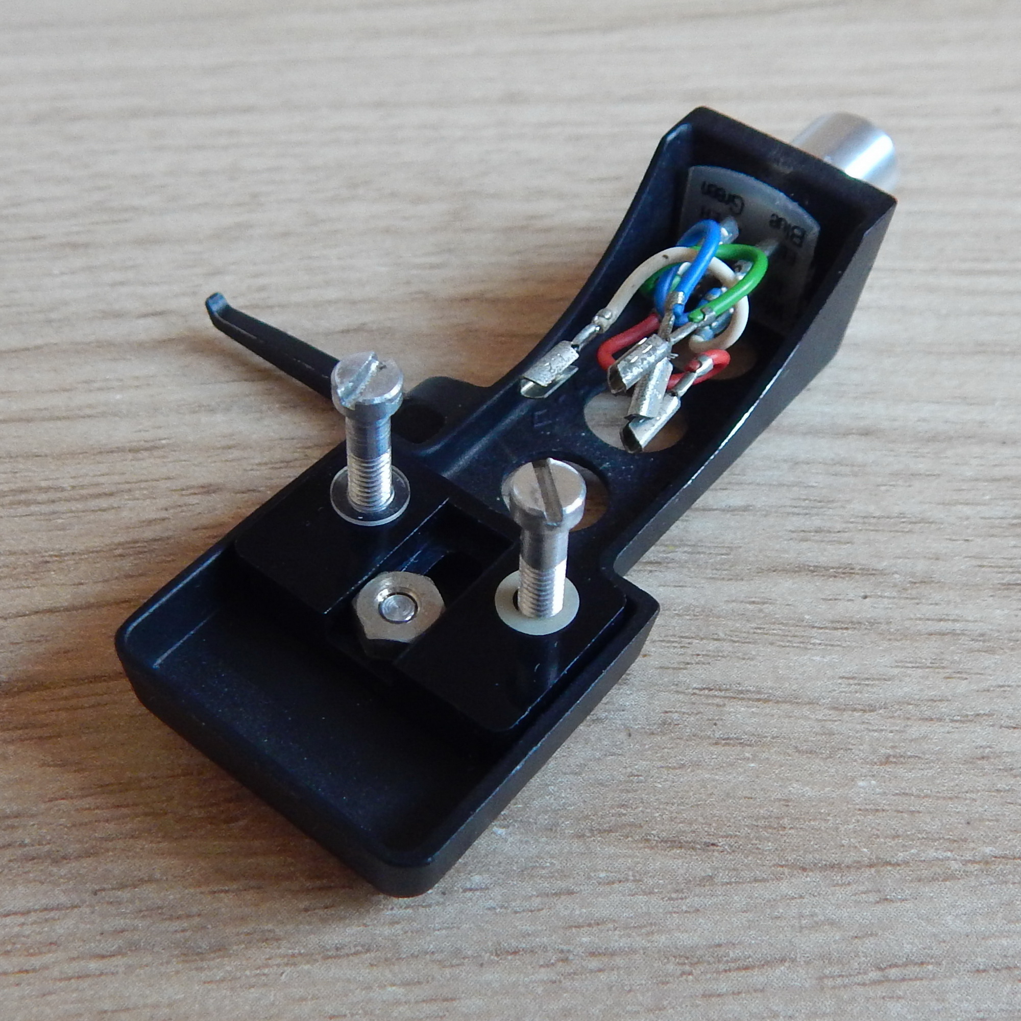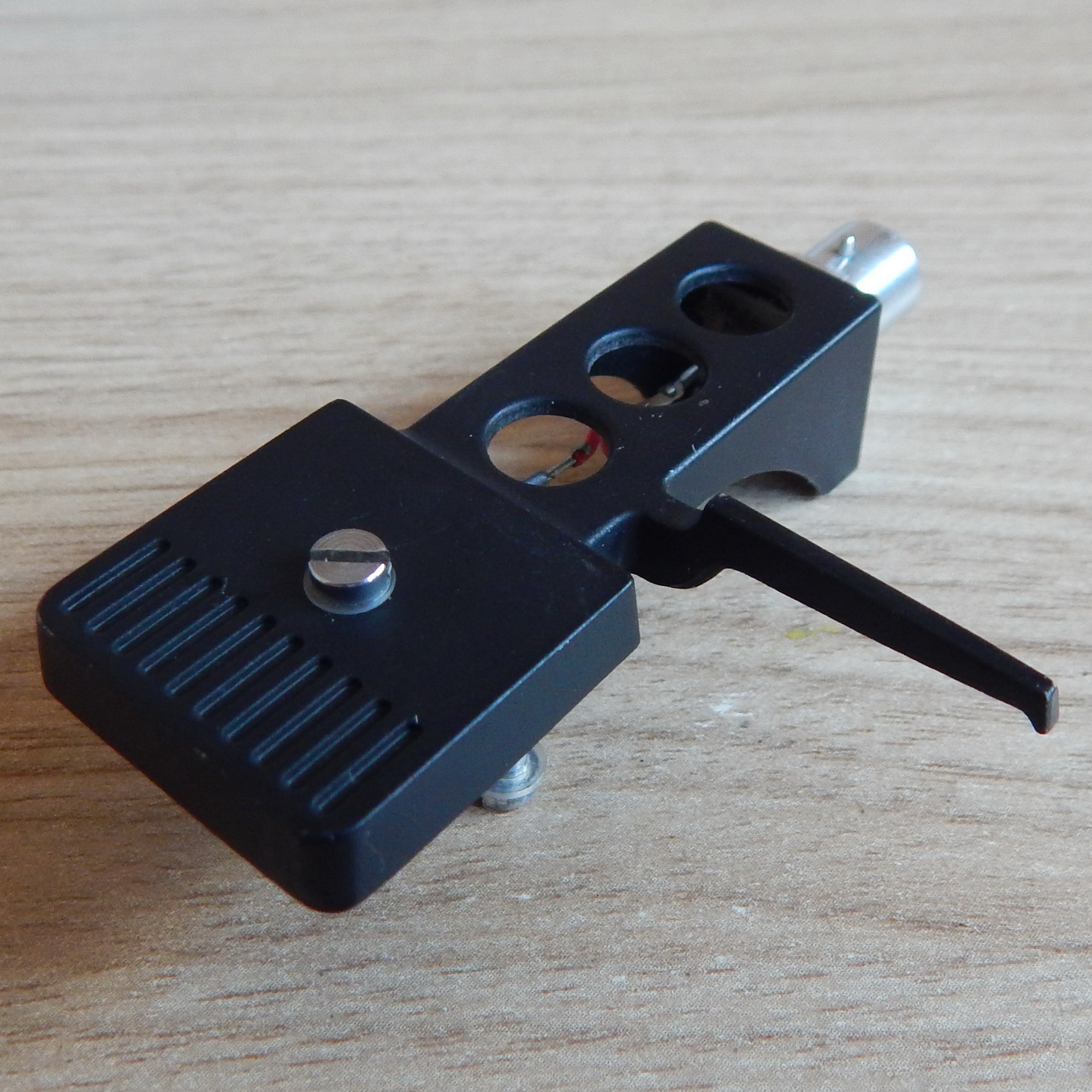 Шелл Technics SH-98, 9,7 гр., черный металлический, с проводами и крепежом 13 мм, Япония. На шелле стояла головка Technics EPC-270C, крепеж от нее. Шелл очень удобен для монтажа различных головок - не требуется гаек, т.к. резьба нарезана в пластмассовой плашке (на глубину примерно 4 мм). Плашка двигается, тем самым регулируется вылет иглы, для этого нужно ослабить винт сверху. Если вывернуть этот винт, то плашку можно перевернуть - она не симметричная, тем самым расширится диапазон регулировки вылета иглы. На данный шелл можно установить практически любую головку! По желанию покупателя винты из лота могу заменить на винты другой длины из наличия - немагнитные из нержавейки на 6,8,10,12,14,16,18 и 20 мм.