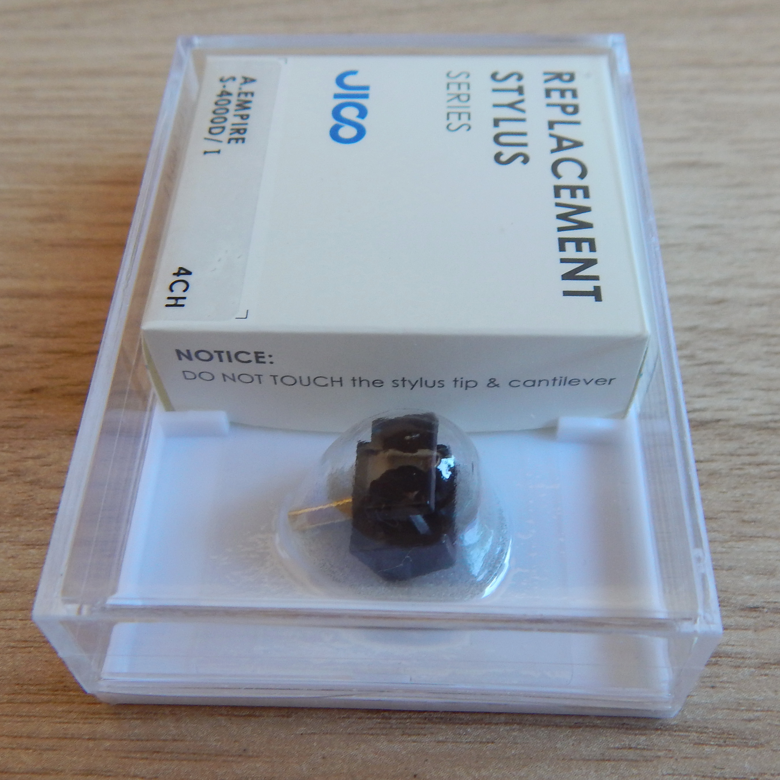 Иголка (вставка) Empire S-4000D/I, заточка шибата, производство JICO, новая, Япония. Пластиковая коробка со вставкой на заводе заклеена по периметру скотчем, аккуратно, незаметно вскрыть ее вряд ли получится.
