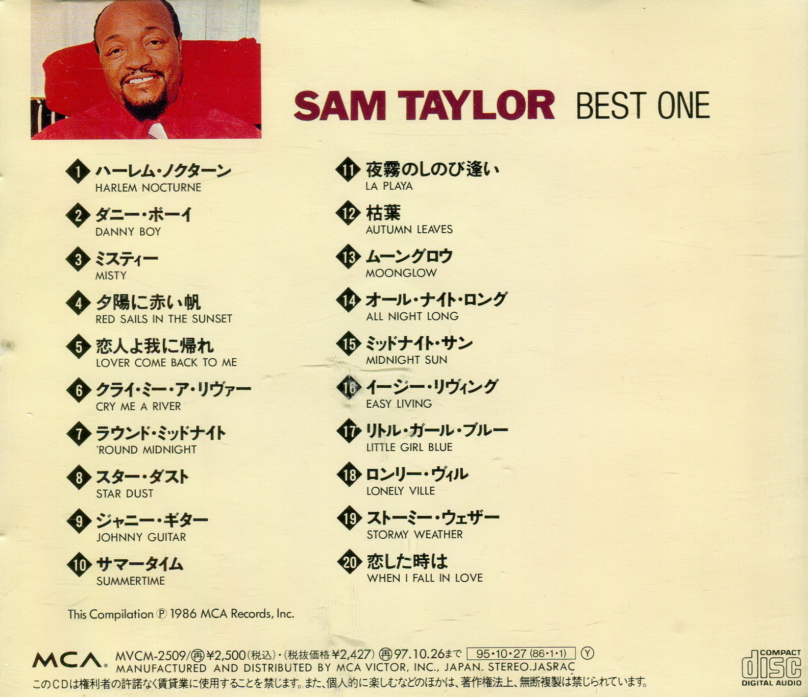 MD Sam Taylor - Best One 1997. Запись с фирменного японского диска, MVCM-2509 (20 треков 61m43s), Сборник, трэклист см. на фото