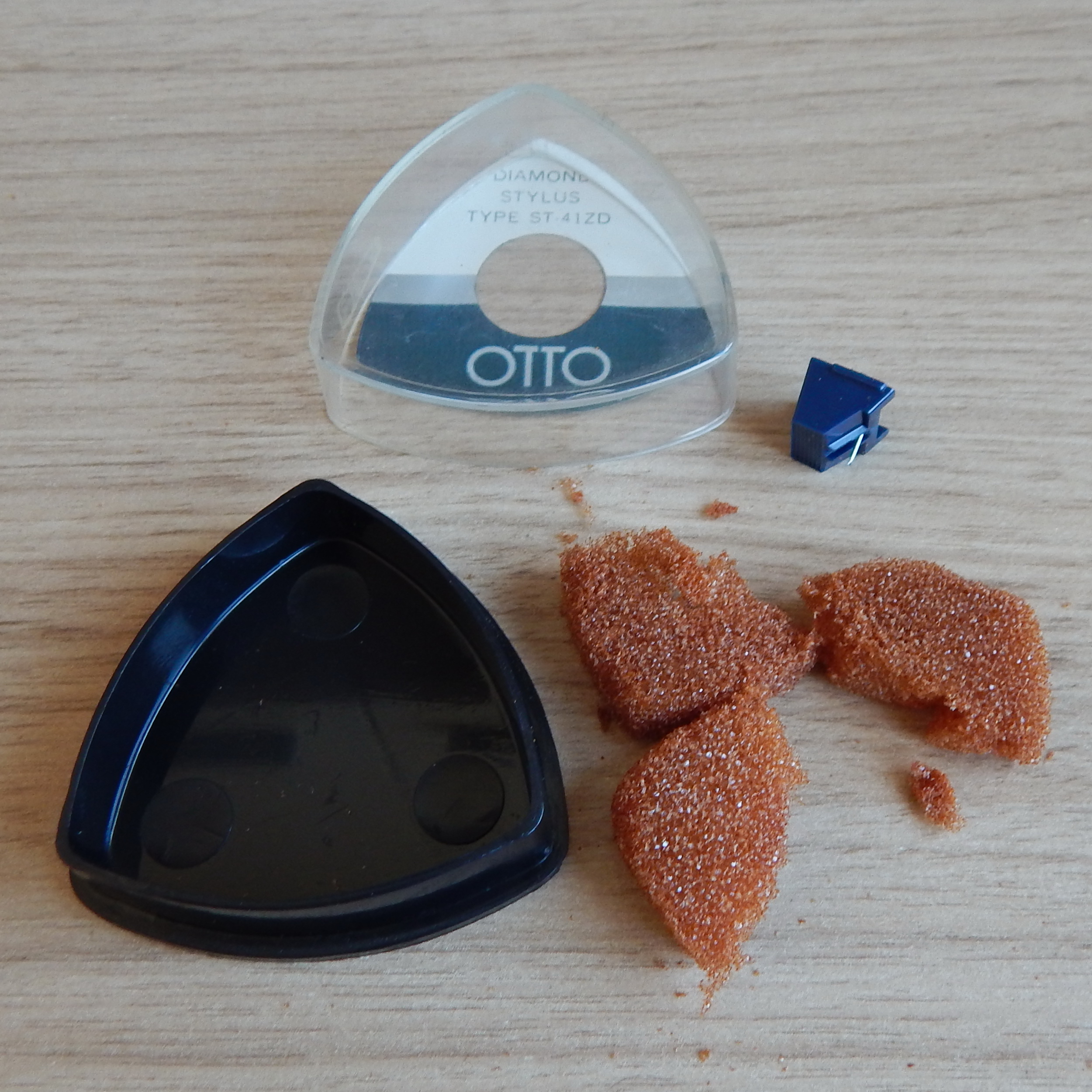 Иголка (вставка) Sanyo (Otto) ST-41ZD (Audio Technica ATN-750, Yamaha N6800) Оригинал!!!. Вставка новая с хранения (NOS). Без следов эксплуатации, подобные оригинальные вставки не защищались пломбами. Аналог Audio Technica ATN-750, Yamaha N6800. Внутренний поролоновый наполнитель рассыпался в труху при попытке достать вставку для фотографирования и осмотра (фото 4), я его выбросил, вставку прикрепил внутри коробки на двухсторонний скотч (фото 5).