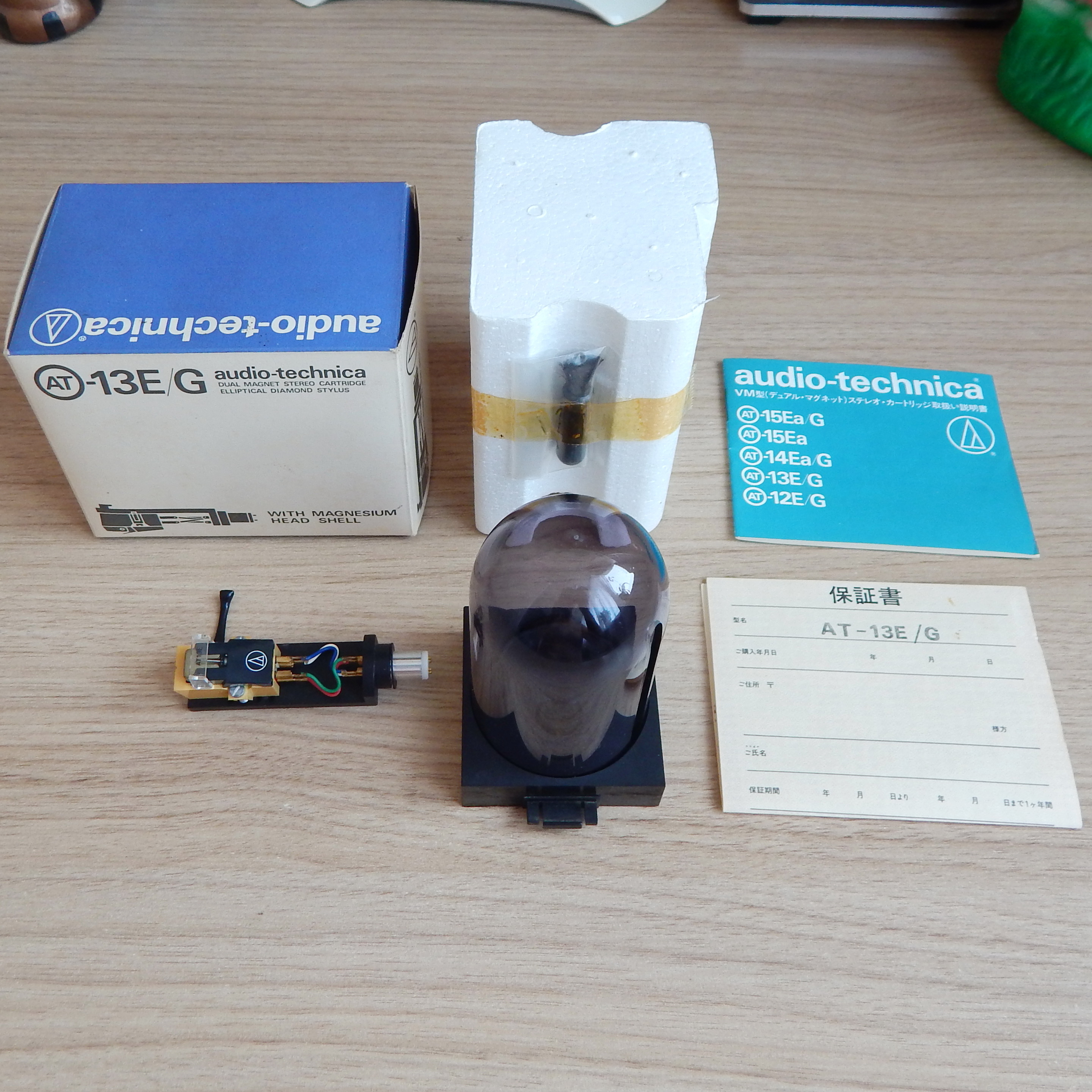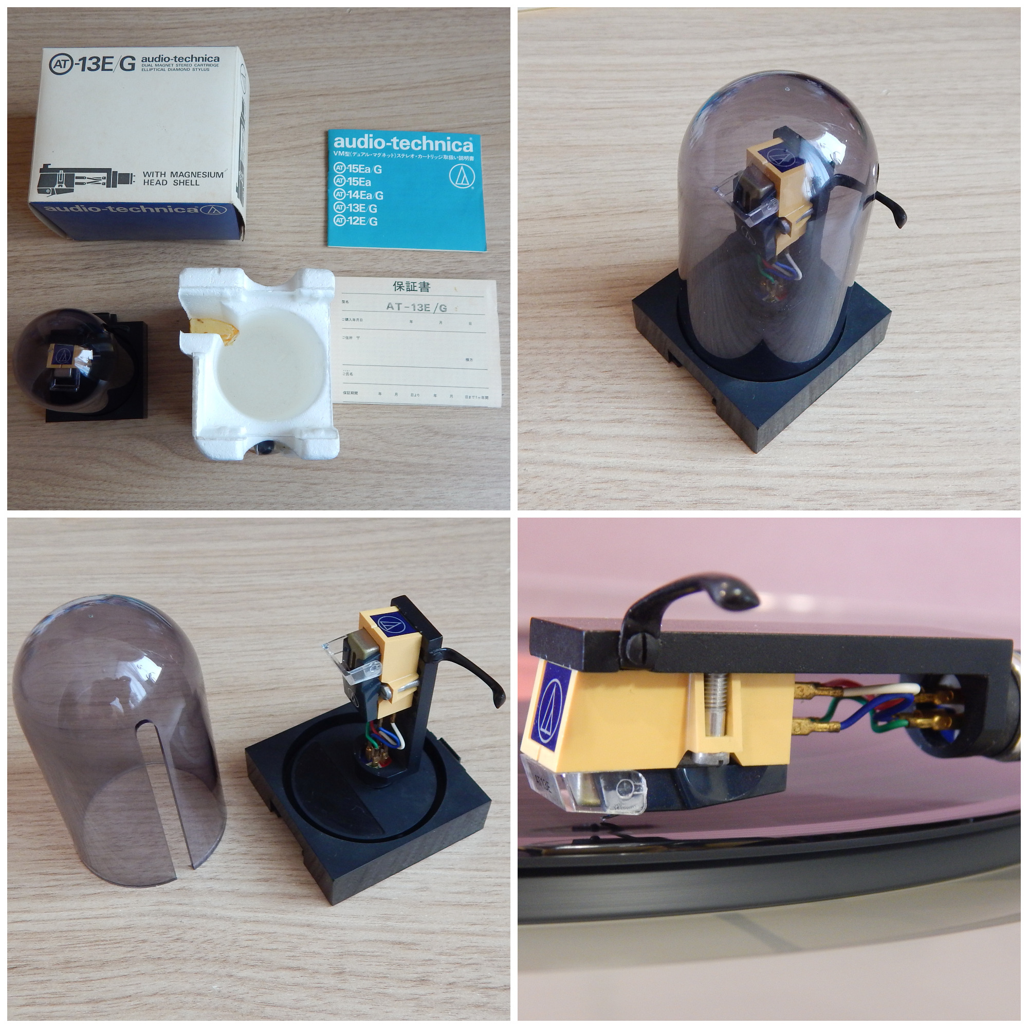 Головка MM Audio-Technica AT-13E, шелл MG-10 Magnesium, эллипсная вставка ATN-13E (цельный алмаз, не бондированный), проверена в работе. В коробке документация, пластиковый бокс, чистящая кисточка, Япония. Головка и вставка скорее всего в работе не были - визуально нет явных следов эксплуатации. Пломбами фирма Audio-Technica свою продукцию обычно не защищает.