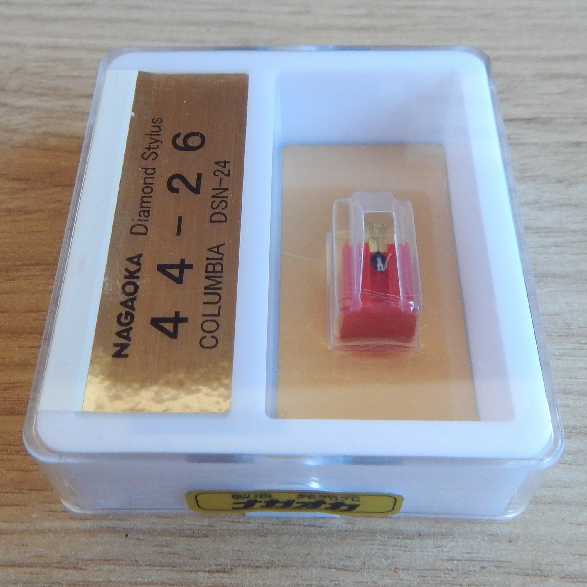 Иголка (вставка) Denon DSN-24 производство Nagaoka Gold серия, Япония. Вставка новая, выпущена недавно, Нагаока и сейчас предлагает небольшой ассортимент вставок на своем сайте. Коробка под пломбами. На обороте написана рекомендуемая прижимная сила (раньше нагаока этот параметр на упаковке не указывала).