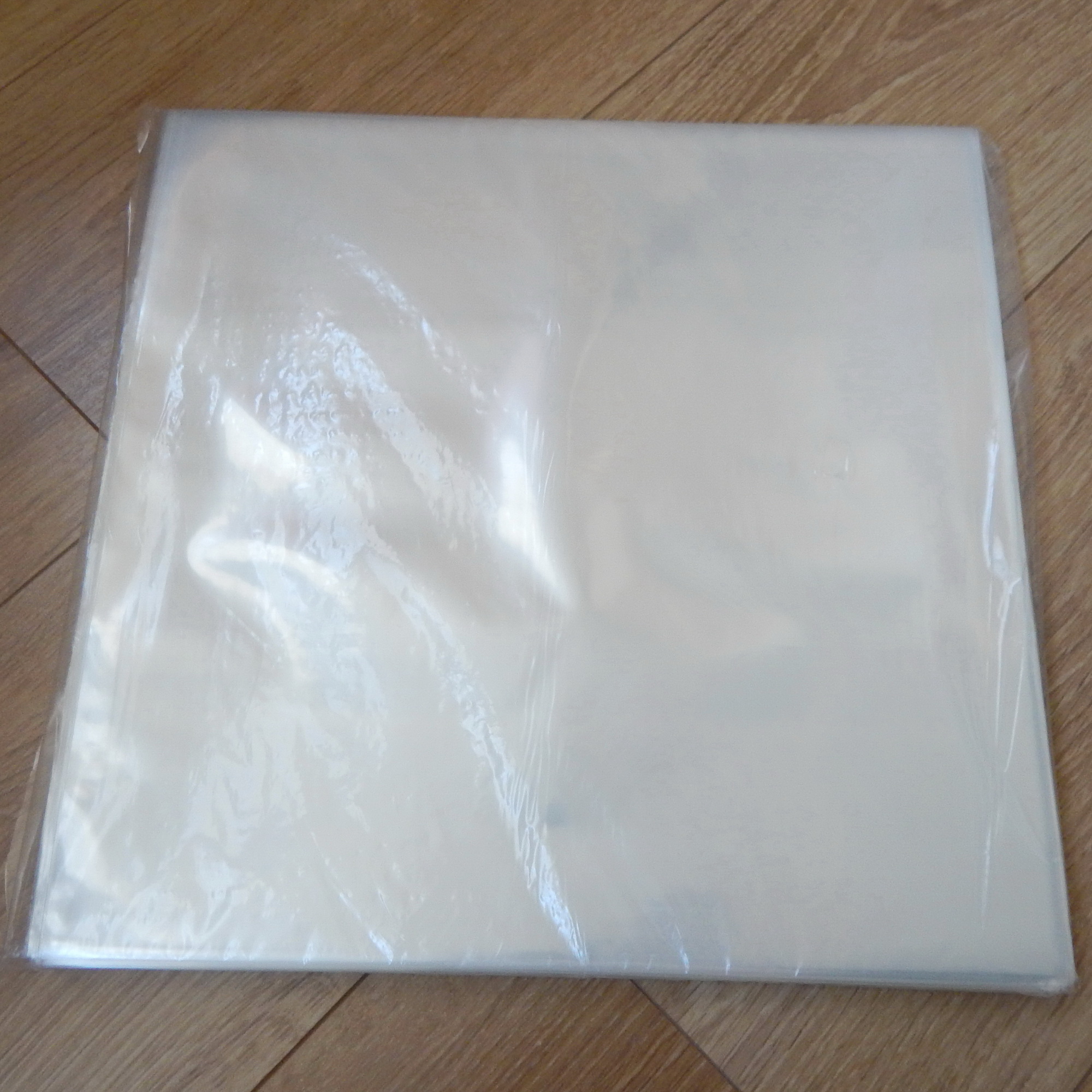 Очень качественные плотные прозрачные пакеты. В пакет помещаются даже две пластинки с разворотами. Снизу пакета небольшой шов, при вертикальном хранении на полке он предохраняет нижний торец конвертов от повреждений.