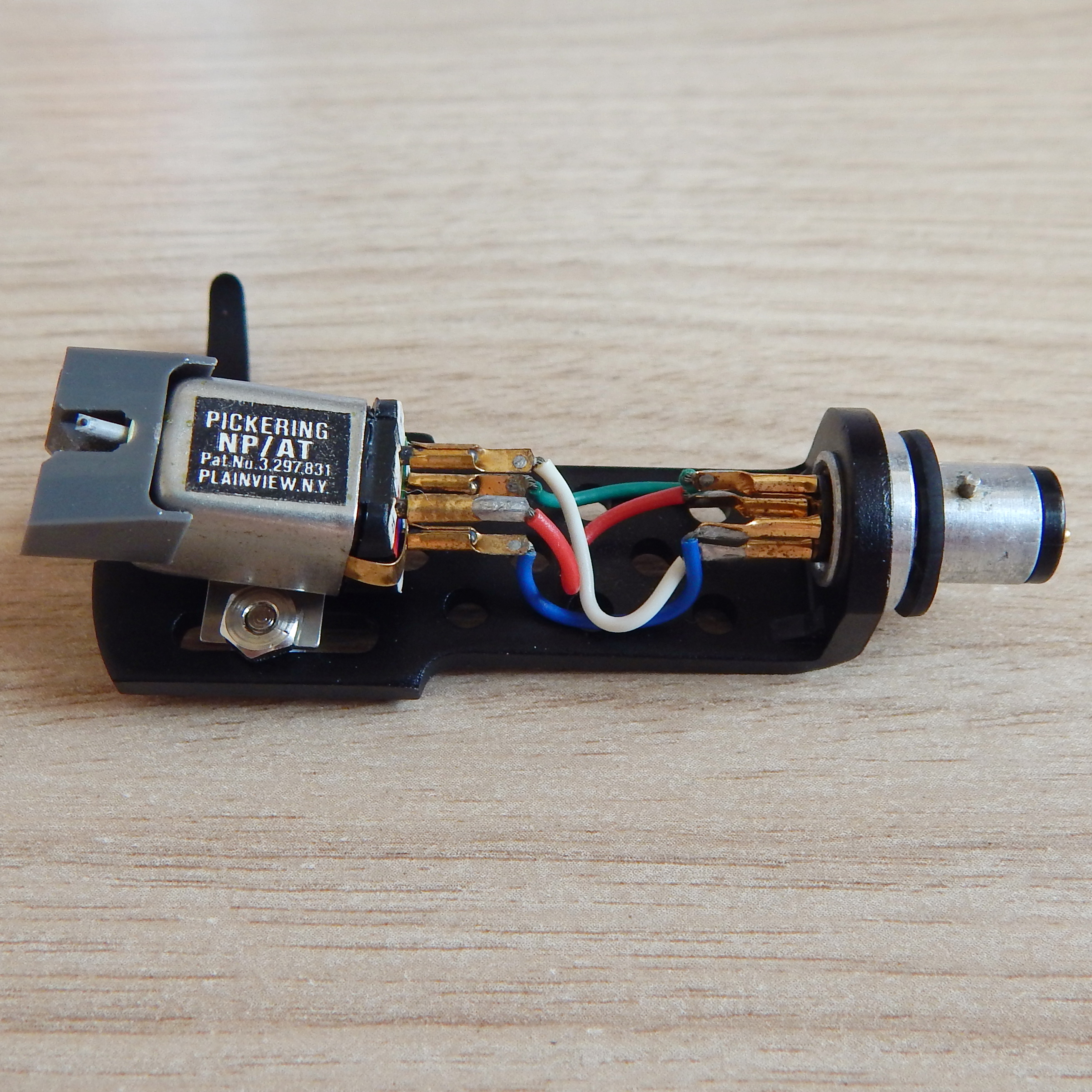 Головка ММ Pickering NP/AT, черный металлический шелл Pickering с двойным замком two-pin lock, вставка б/у PD07-T. Головку получил из Японии, шайб под головками винтов не было, отсюда есть следы на шелле в месте крепежа, нейлоновые шайбы поставил. В остальном состояние шелла очень хорошее. Вылет иглы выставил по шеллу под свой тонарм (от резинки до кончика иглы 52 мм). Вставка оригинальная, в хорошем состоянии. Для оценки звучания можно прослушать небольшой звуковой сэмпл на яндекс-облаке по ссылке. Раздельной продажи нет!