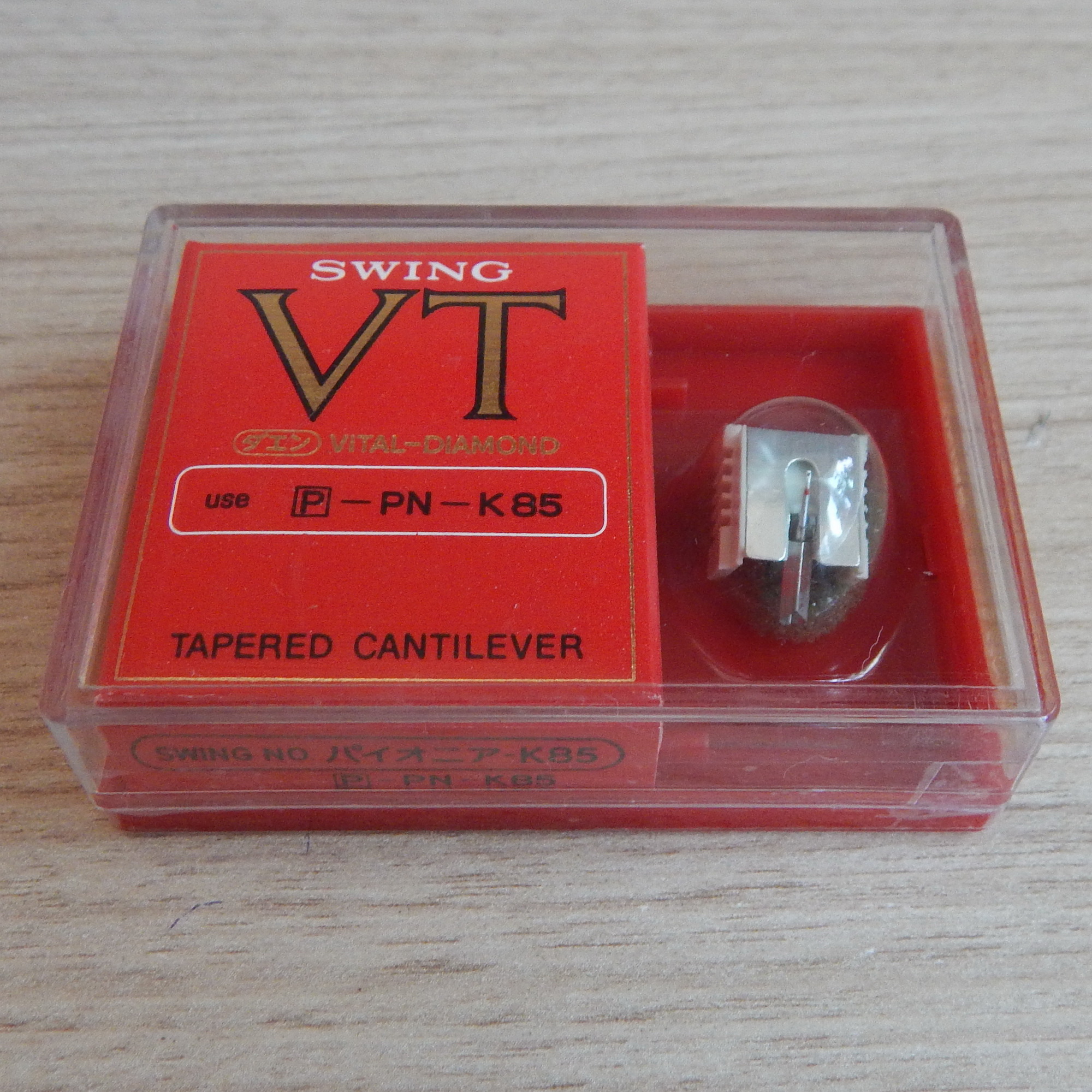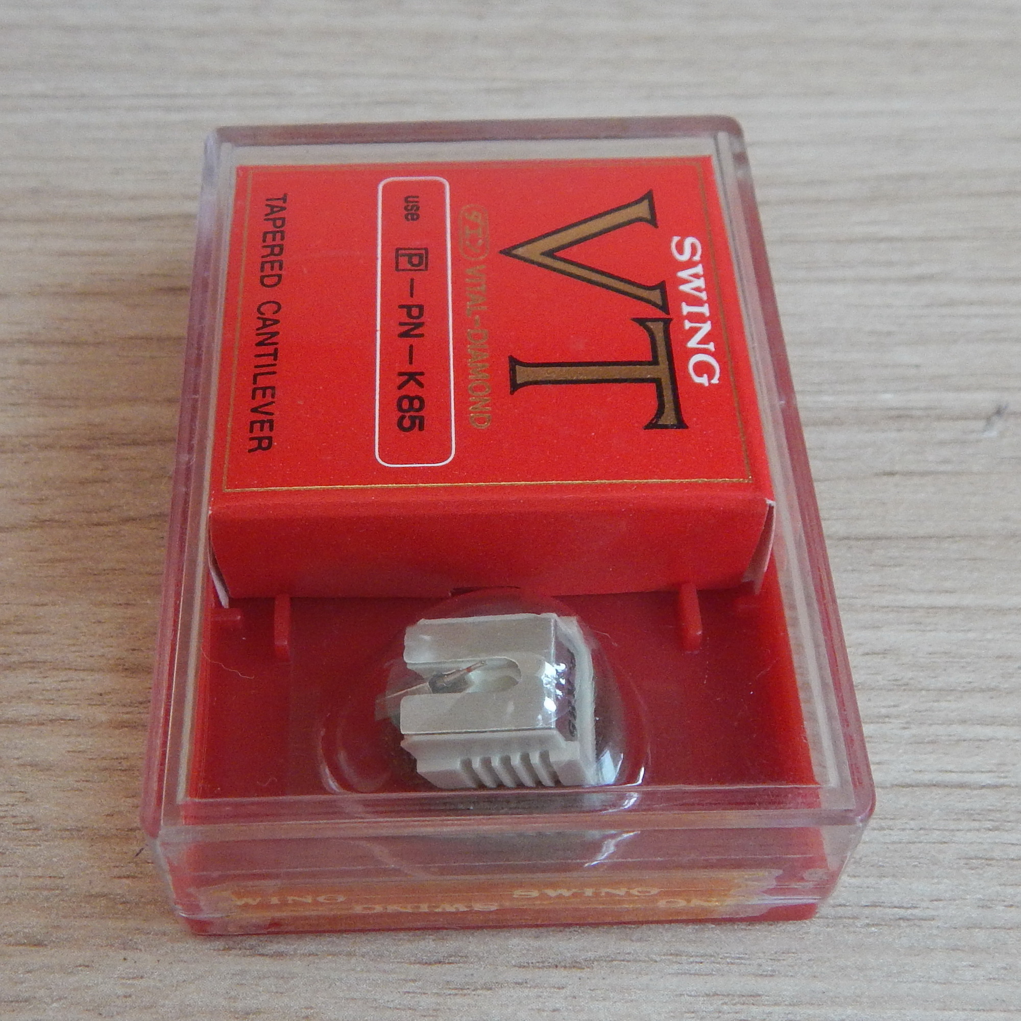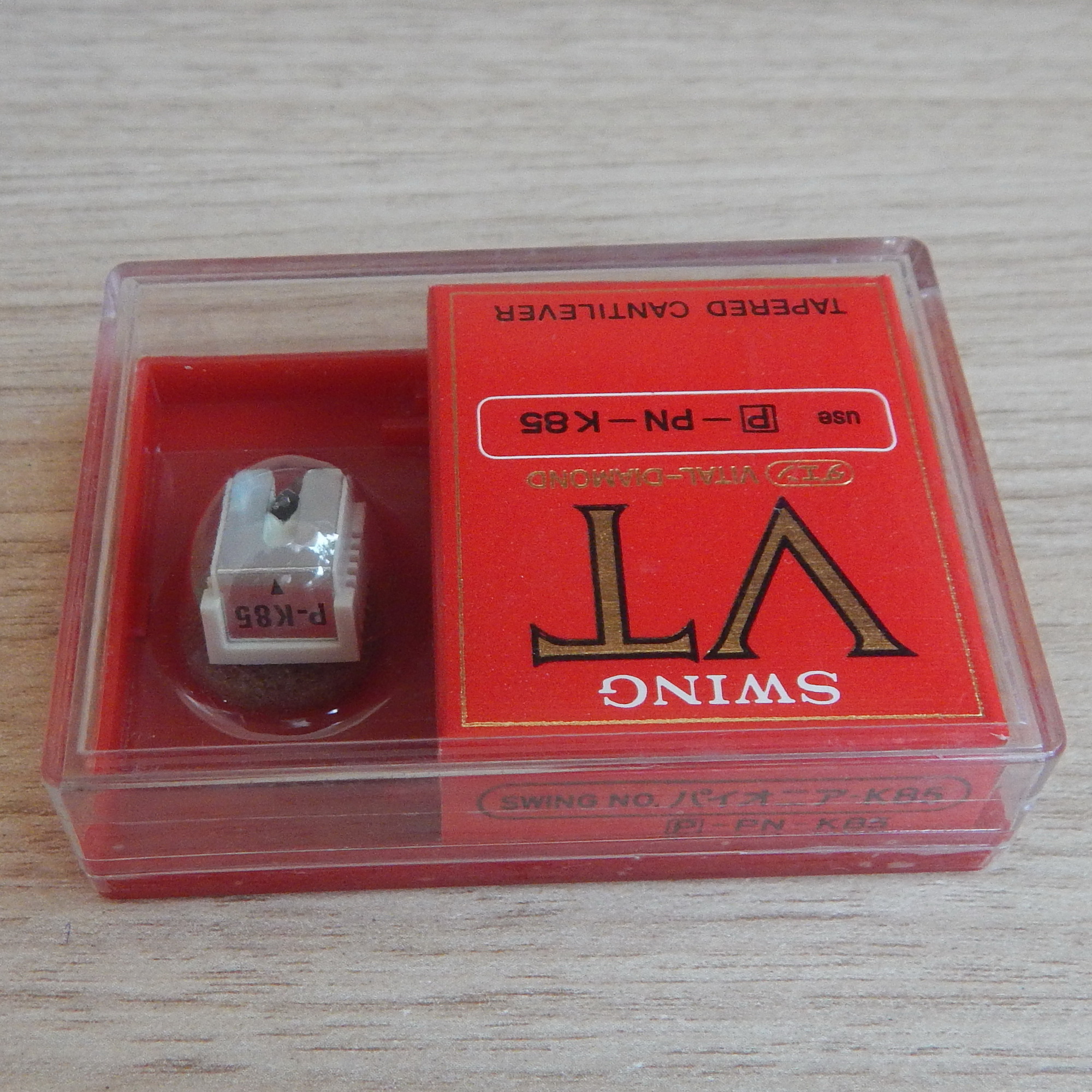 Вставка известной японской фирмы Swing топовых серий VT и VTx. Выпускались в красных коробках, внутри коробки есть вкладыш (последнее фото), где написано, что игла с эллиптической заточой 0,3 x 0,7 mil и рекомендуемая прижимная сила. Все коробки естественно не вскрывал, но в открытых такие вкладыши были! Стоили раза в 1,5 дороже, чем обычные вставки от Swing в белых коробках со сферическими иглами 0,5 mil.
