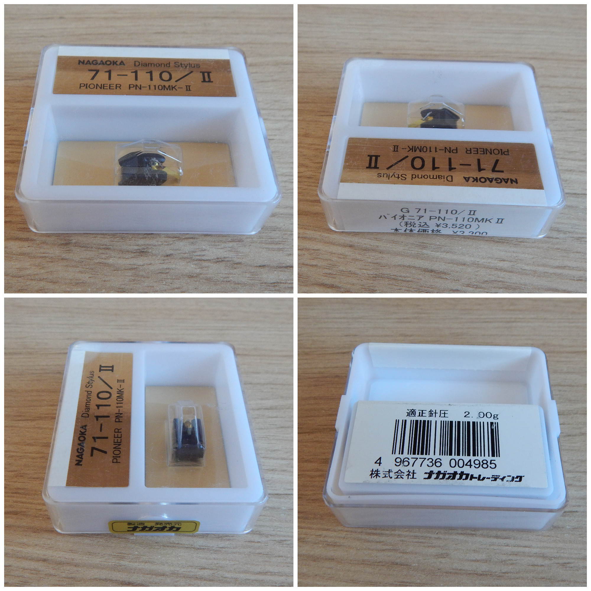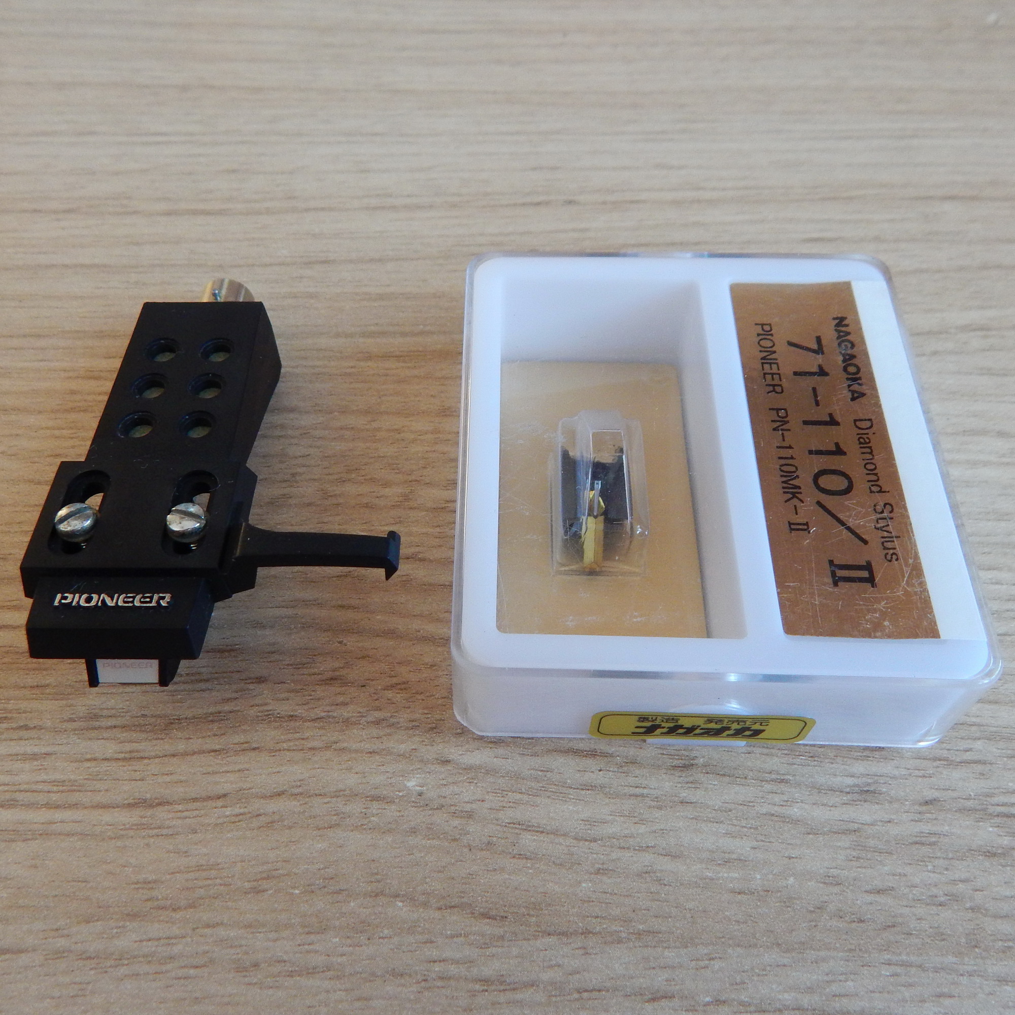 Головка MM Pioneer PC-110 (проверена в работе на проверочной вставке), шелл Pioneer JP-504, вставка новая под пломбами (не NOS с хранения) Pioneer PN-110/II, производство Nagaoka Gold, Япония. По данным производителя на таких вставках Nagaoka Gold серии установлены овальные иглы с суперполированной поверхностью, кантеливеры покрыты твердой тонкой пленкой из нитрида титана.