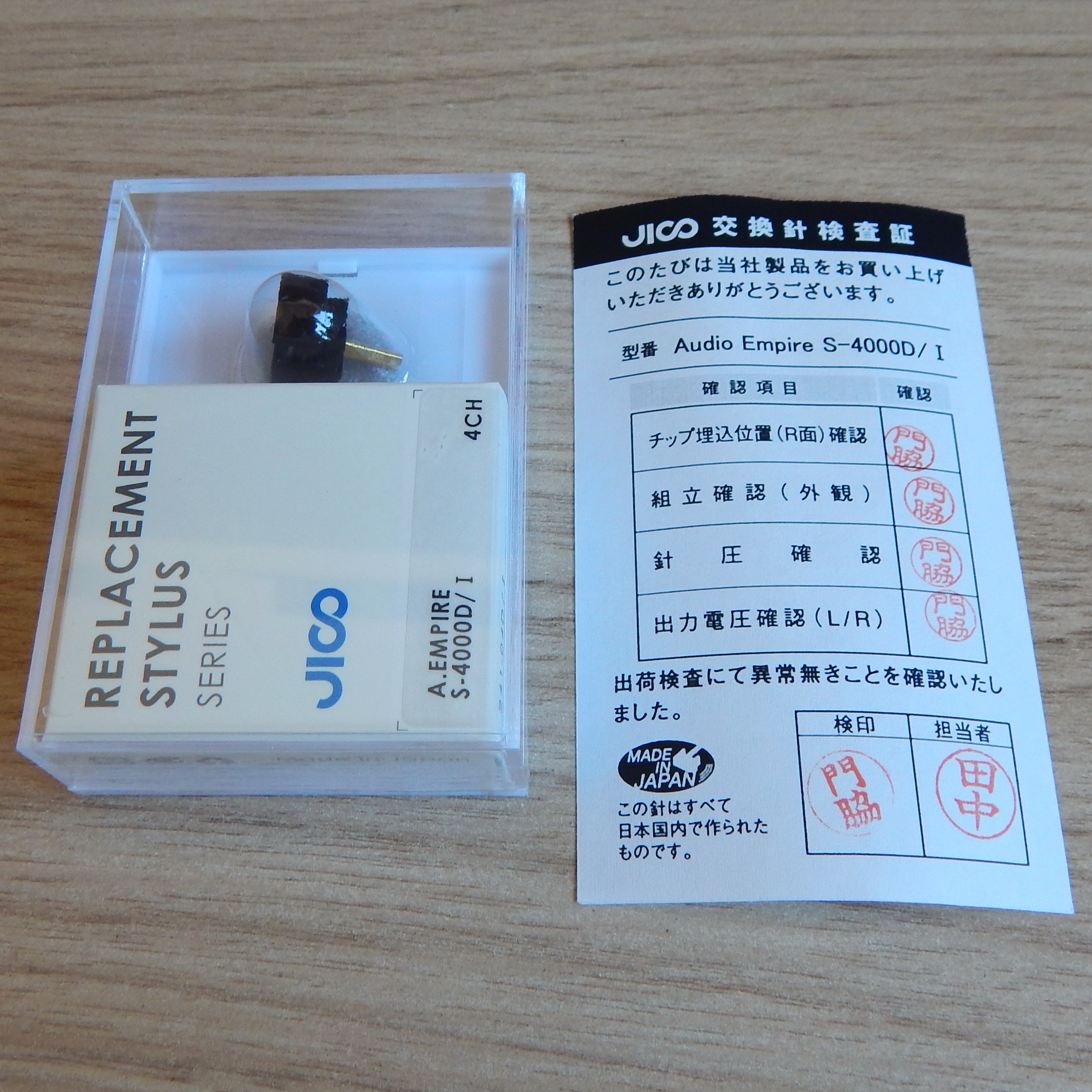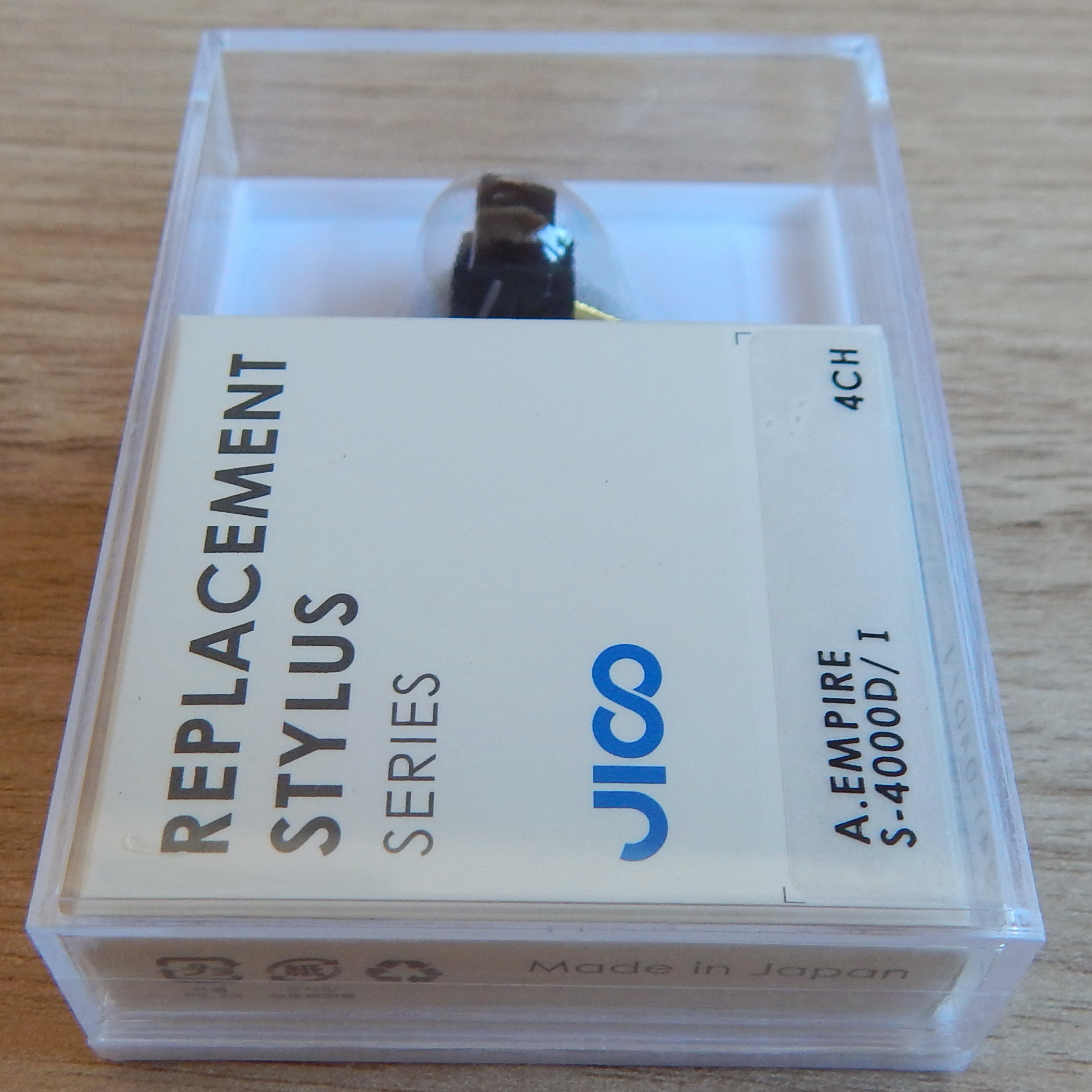 Иголка (вставка) Empire S-4000D/I, заточка шибата, производство JICO, новая, Япония. Пластиковая коробка со вставкой на заводе заклеена по периметру скотчем, аккуратно, незаметно вскрыть ее вряд ли получится.