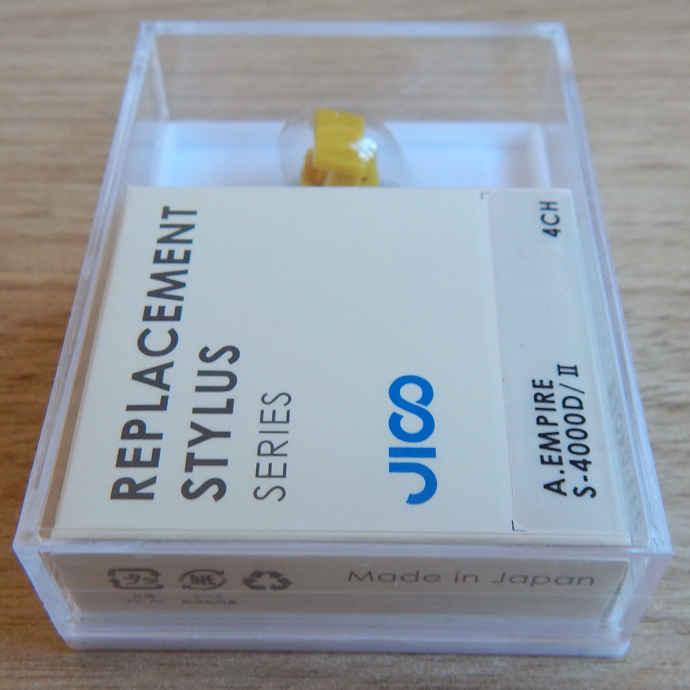 Иголка (вставка) Empire S-4000D/II, заточка шибата, производство JICO, новая, Япония. Пластиковая коробка со вставкой на заводе заклеена по периметру скотчем, аккуратно, незаметно вскрыть ее вряд ли получится.