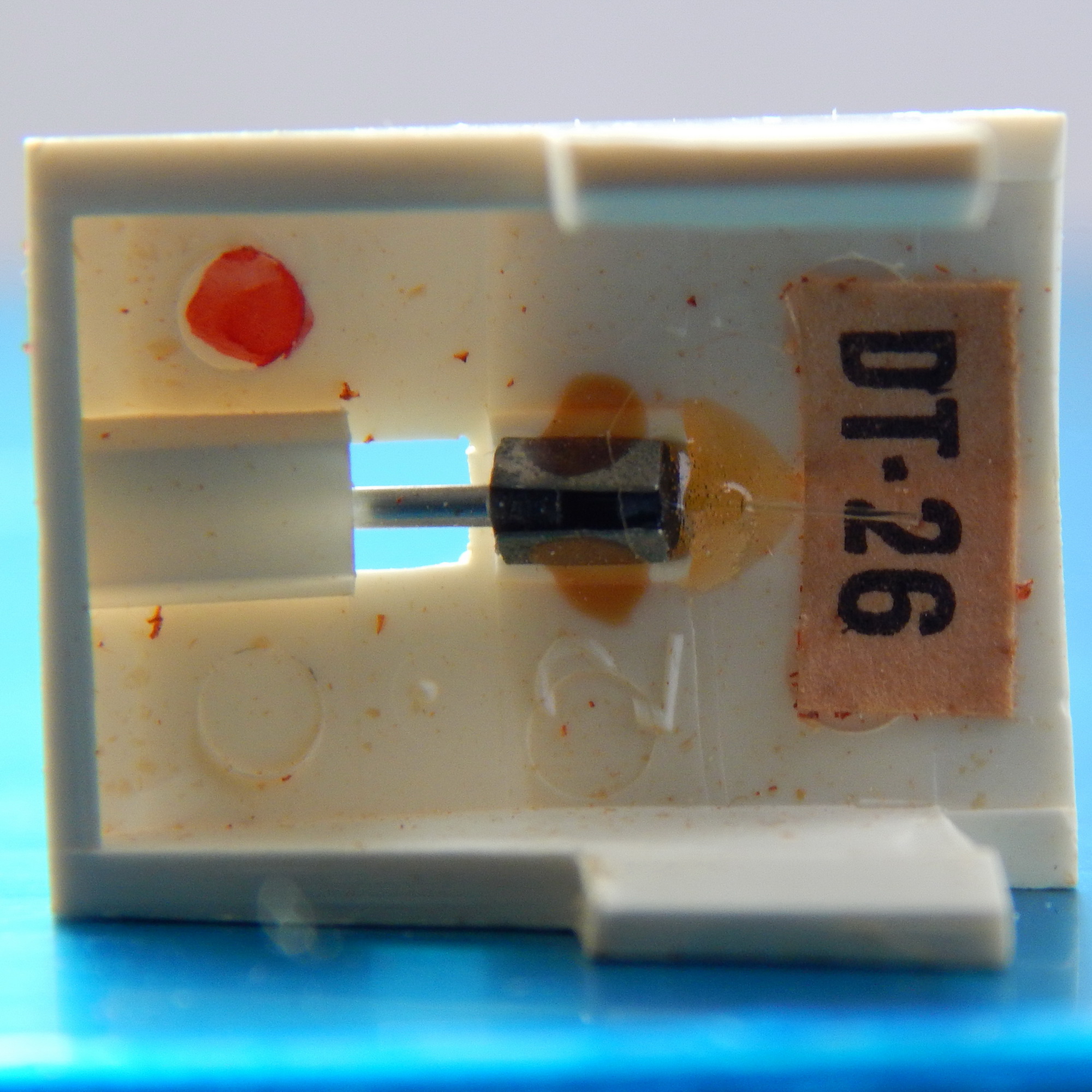 Иголка (вставка) Victor DT-26 оригинальная, Япония. Без следов эксплуатации, с завода вставка шла прикрытая скотчем - на фото 3 он еще виден, высох, я его удалил. Вставку почистил на очистителе стилуса Audio Technica AT-637, визуально кантилевер и игла чистые, без окислов.