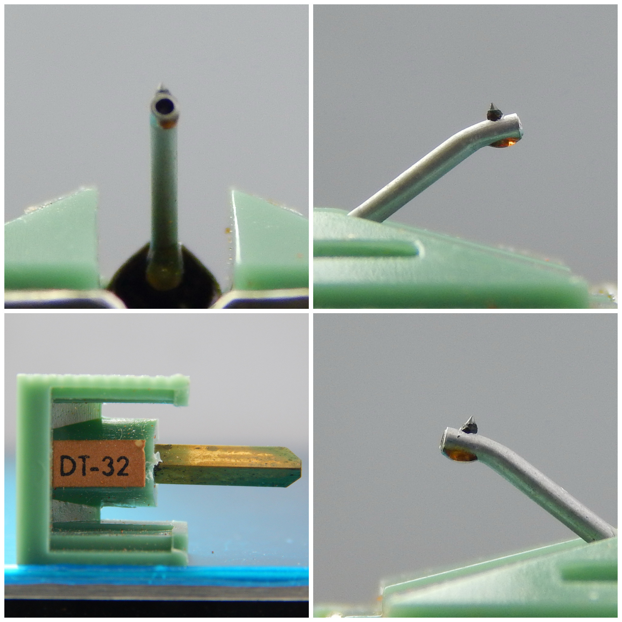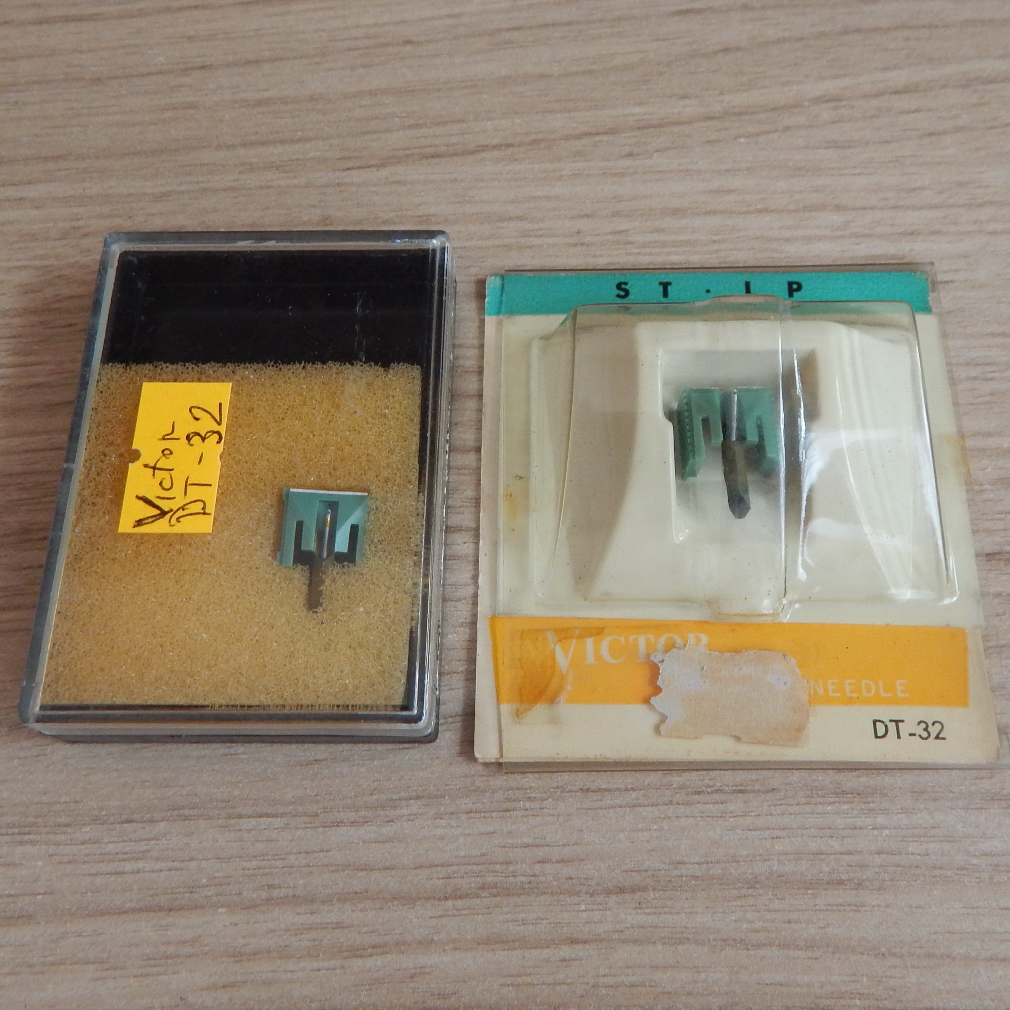 Иголка (вставка) Victor DT-32 оригинальная + реплика, Япония. Без следов эксплуатации, с завода оригинальная вставка шла прикрытая скотчем он высох, я его удалил. Вставку почистил на очистителе стилуса Audio Technica AT-637, кончик иглы чистый, кантилевер без окислов, ровный. Вставка-реплика куплена в Японии, коробка не родная. Видно, что без следов эксплуатации, игла и кантилевер чистые. Кантилевер немного загнут - на последнем фото это видно. В цене учтено! Цена указана за 2 вставки, продаются комплектом.