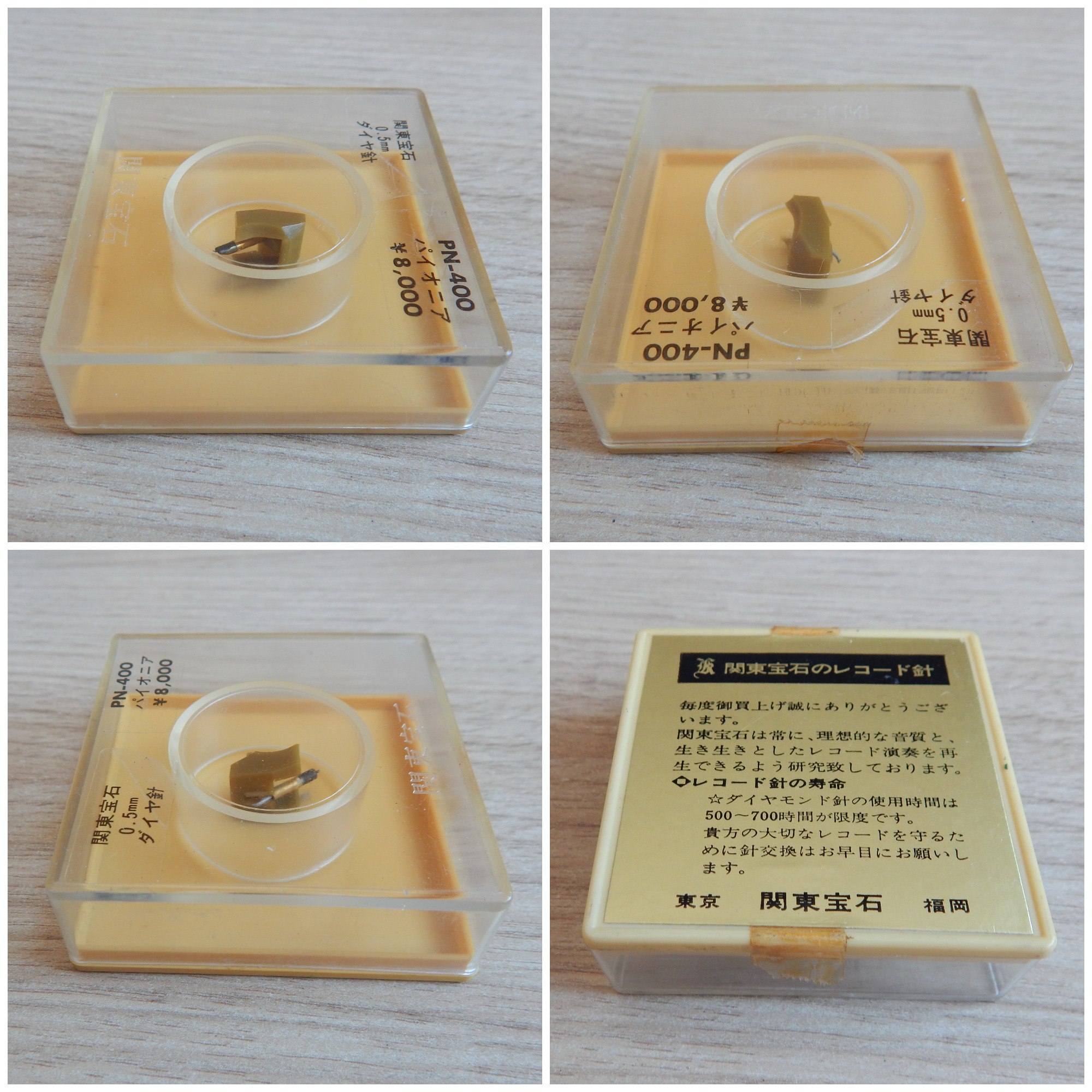 Скотч-пломбы на вставке от Jewel Kanto высохли - это общая их беда. Окислы на кантеливере присутствуют, это распростаненное явление для японских вставок после 40-летнего хранения. Перед проверкой почистил иглу на очистителе стилуса Audio Technica AT-637 жидкостью AT607, жесткой химией для предпродажной подготовки не пользуюсь. У вставки PN-400 кантилевер со струной, продажная цена была 8000 йен - это много, цена для алмаза заточки уровня Shibata. Вставка PN-200 тоже со струной, продажная цена на них была 4500 йен. Про заточки алмазов у вставок у меня нет достоверной информации, могу только предполагать, что у PN-400 не ниже эллипса, у PN-200 возможно эллипс. Экземпляр PN-200 в данном лоте больше для демонстрации, вставка с погнутым кантеливером - вставка идет бонусом!